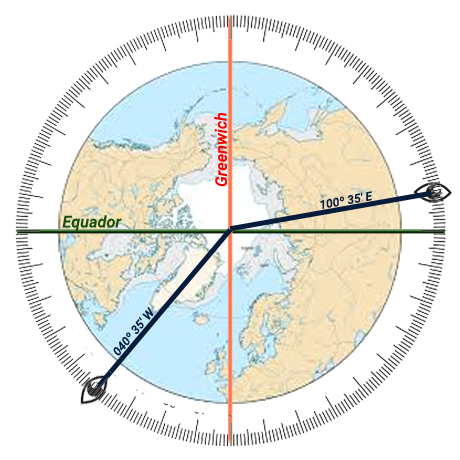 Para um observador situado num ponto A da superfície terrestre, com longitude de 100º 35' E e outro observador situado num ponto B com longitude de 040º 35' W, a diferença de longitude entre esses observadores será de: